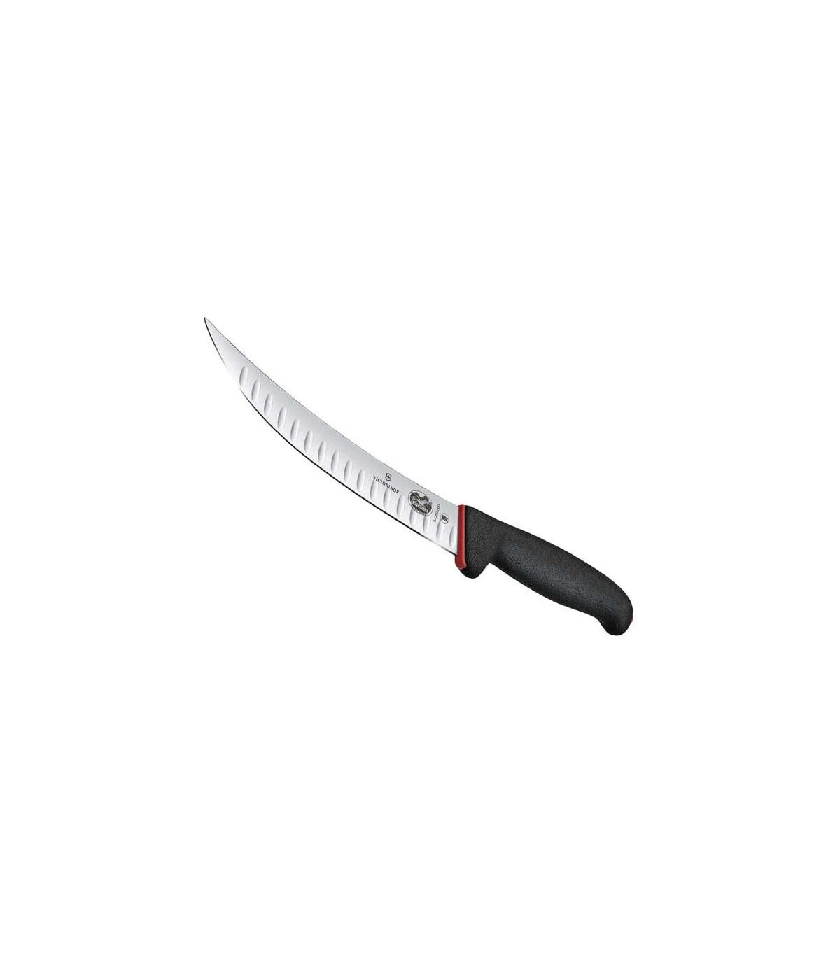 Victorinox 5.7223.20d Couteau abattre, lame étro. 20 cm inox, dos renver., man bi-mat. axe en polypro. rouge grip en elast. noir