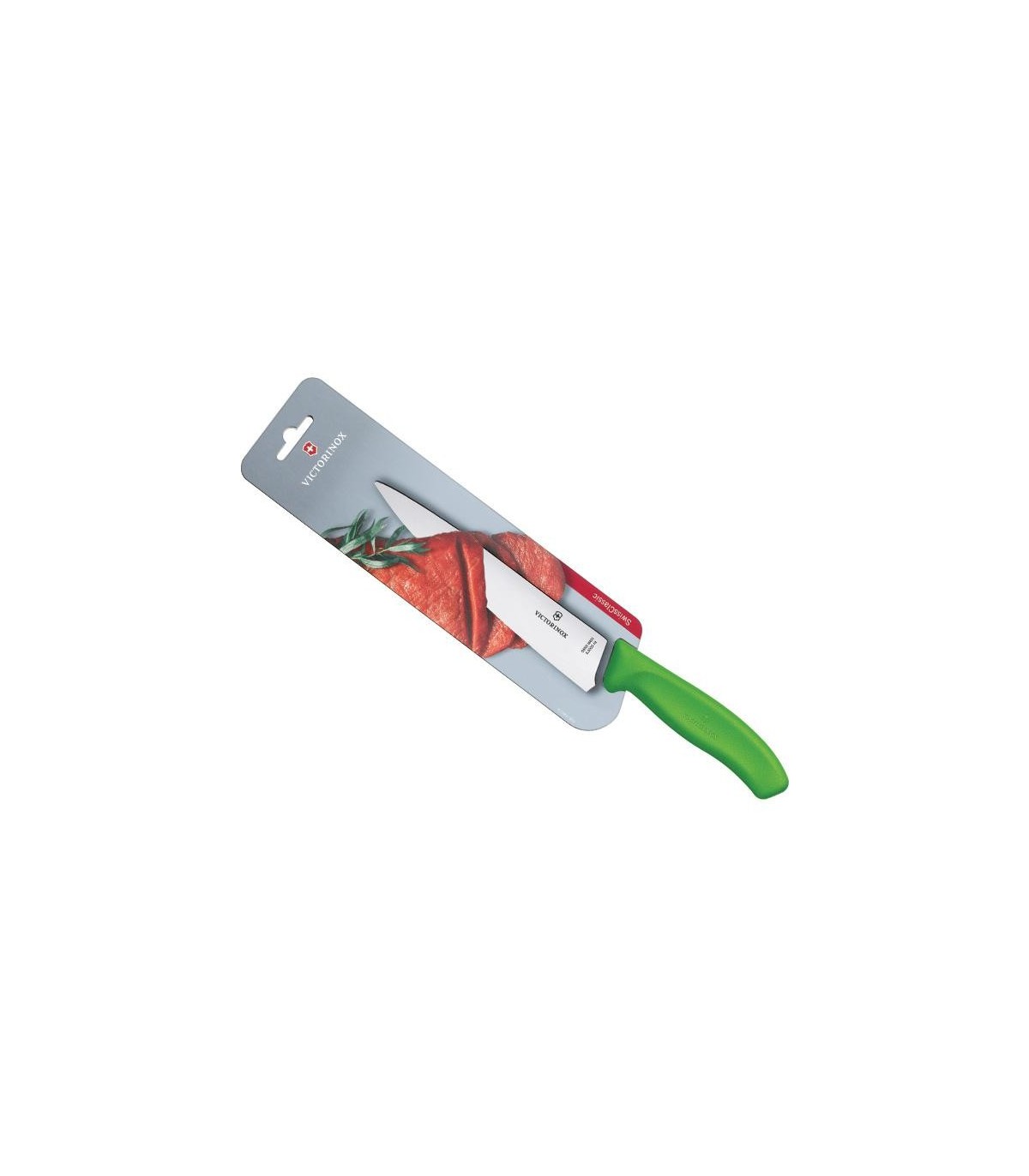 Ce couteau à découper Victorinox vous ravira pour sa maniabilité et sa facilité d'utilisation. Son harmonieuse lame en acier inoxydable d'une longueur de 19 cm est fusionnée avec un manche en fibrox couleur : vert.