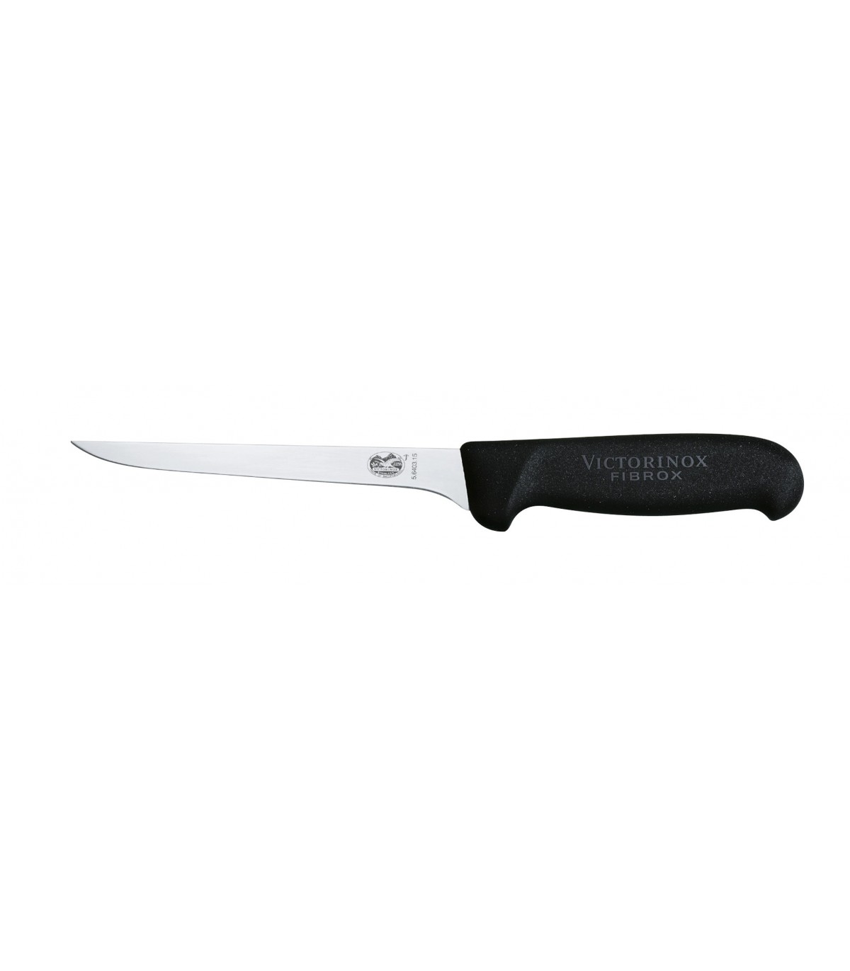 Victorinox 5.6403.12 Couteau désosser, lame étroite usée 12 cm inox, dos droit, manche fibrox noir..