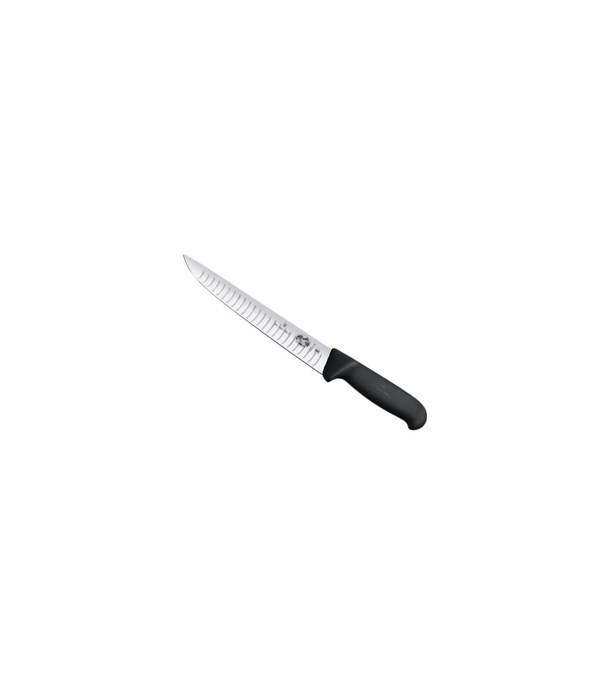 Couteau saigner/découper, lame alvéolée 20 cm inox, manche fibrox noir.