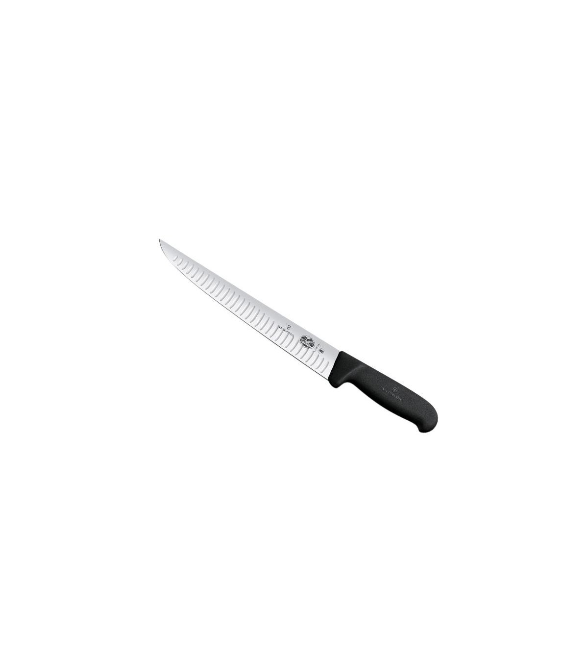 Couteau saigner/découper, lame alvéolée 25 cm inox, manche fibrox noir.