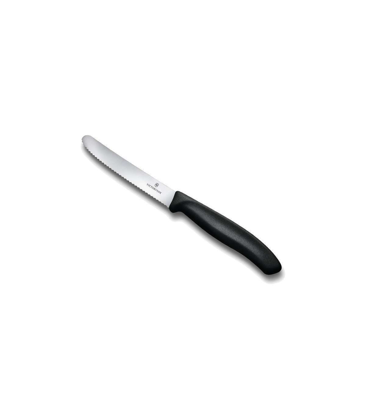 Victorinox 6.7833.6 Boîte de 6 couteaux de table/tomates, lame crantée 11 cm inox, bout rond, manche polypropylène noir.
