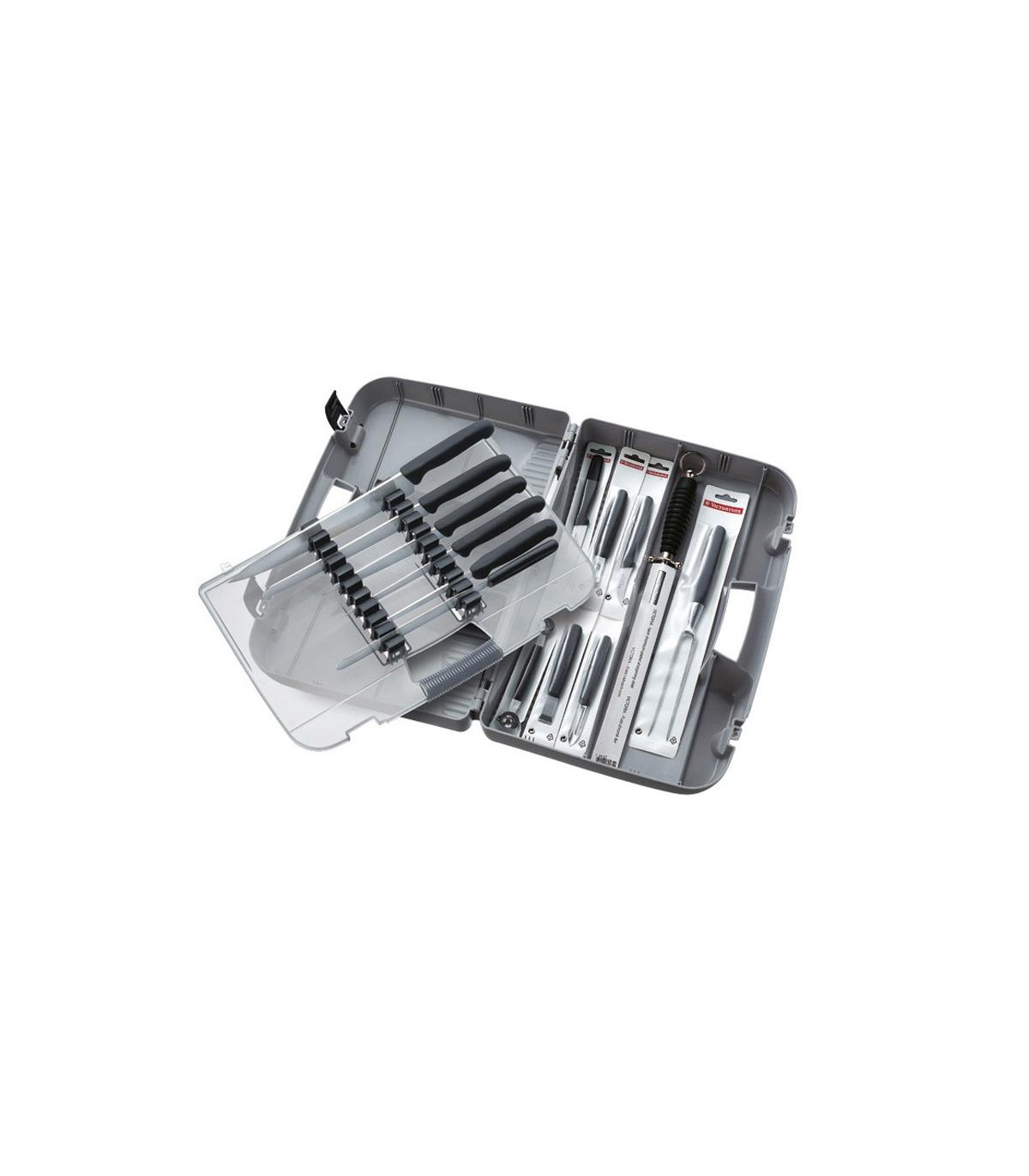 Victorinox 5.4903 Valise cuisinier grise (46 x 31 cm), contient un assortiment de 14 couteaux/outils manche noir