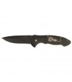 L'harmonie de ce Couteau Fermant tec a été respectueusement réalisé par ses artisans créateurs. Ce couteau sera un Outil de convoitise parmi tous vos amis. Son cran intérieur et à boutons dorés actionne l'ouverture de sa lame en acier noire 420 avec une formidable aisance. Son somptueux manche de 9 cm ou 11 cm s'orne de plaquettes en Aluminium noir avec une découpe d'une tête de Puma, et de platines dorées. Un clip pour le port en ceinture vous est soumis.