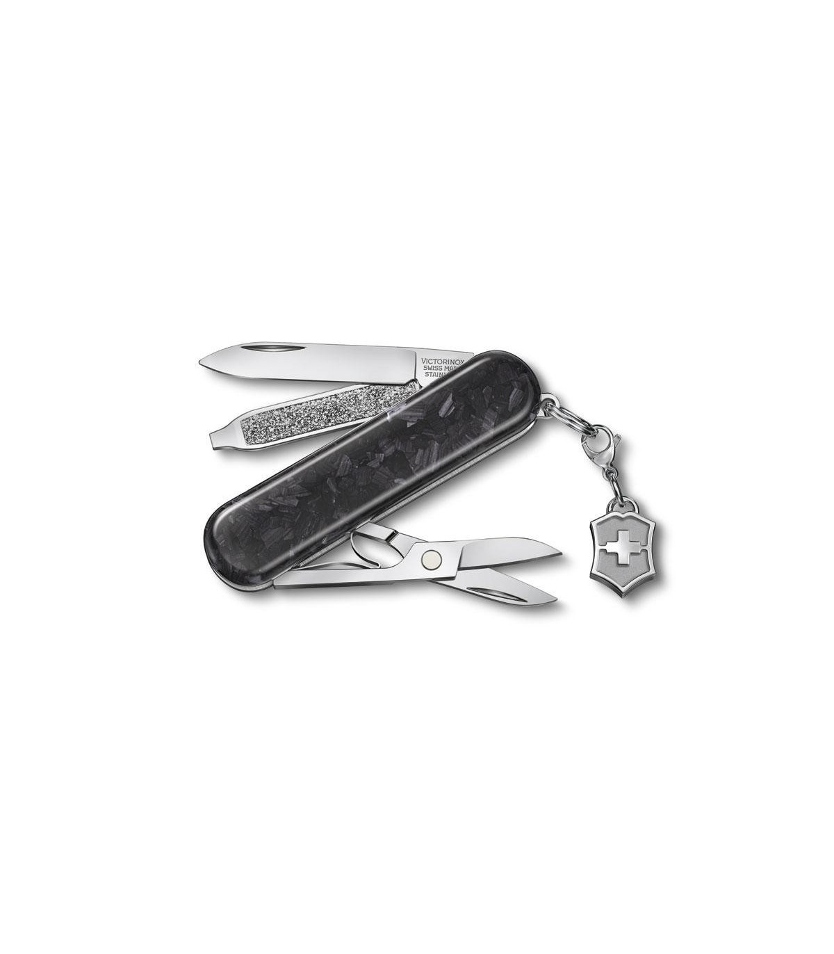 canif victorinox classic sd brilliant fibre de carbone, 6 fonctions, manche de 5,8 cm noir brillant