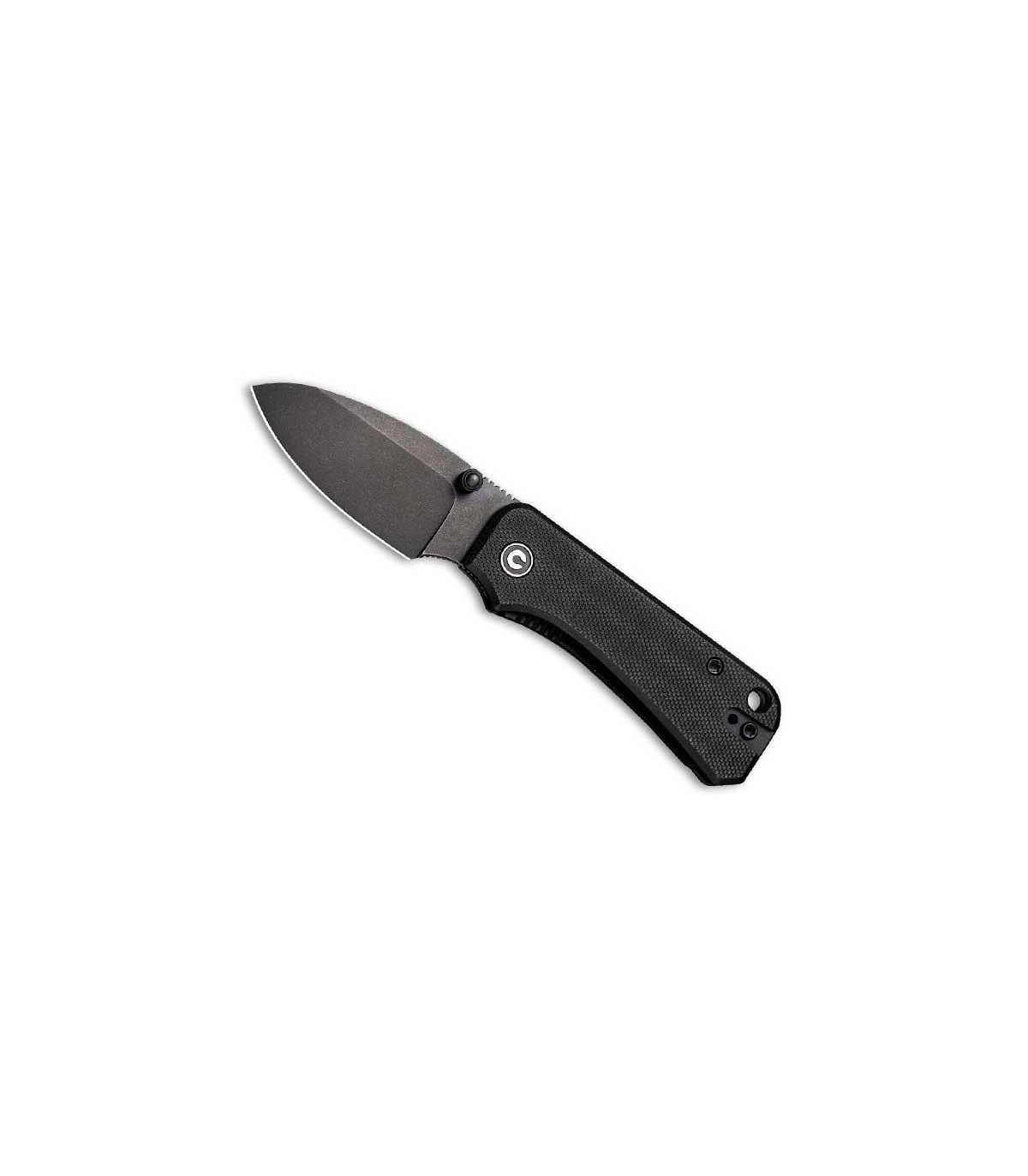 couteau civivi baby banter,lame de 6,5 cm acier Nitro-V titanium 6AL4V bleu, manche 8 cm acier inox gris avec plaquettes G10 noir
