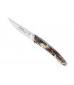 Le couteau Le Thiers Verrou de Claude Cdozorme est fabriqué en France par des maîtres couteliers. Il est conçu avec une lame en acier xc50crmov15 brillante (le blocage s'effectue grâce à un loquet de vérouillage disposé au bout du manche. Divers ajouts de matières sont réalisés dans le manche. Un plein manche de 12 cm harmonisé avec une inclusion de plumes du peintre. Les plumes utilisées pour l'inclusion sont généreusement offertes aux couteliers par des amis Chasseurs. Chacun des couteaux est livré dans son coffret.