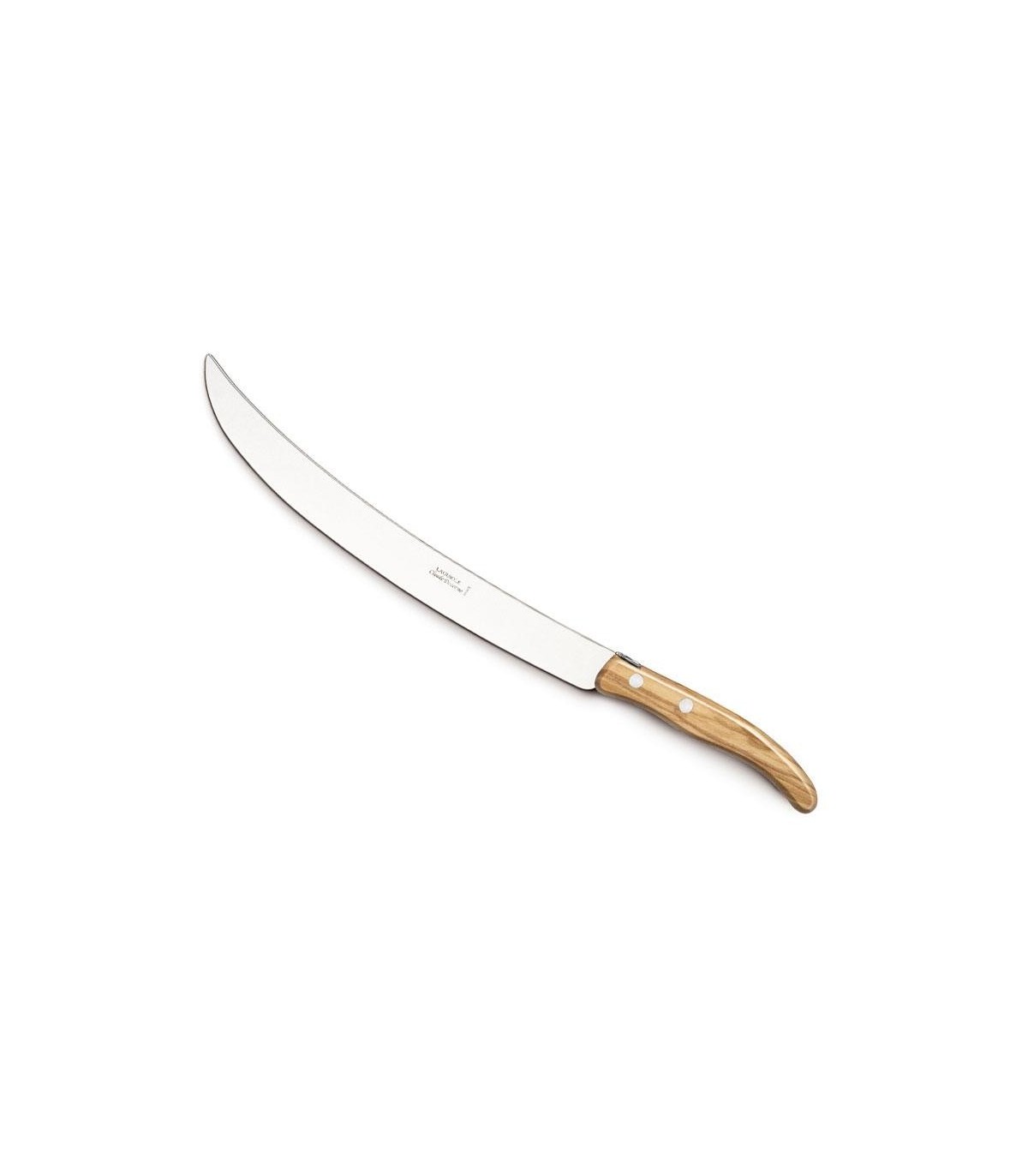 sabre a champagne laguiole dozorme, lame 34 cm inox, manche olivier, en coffret bois.