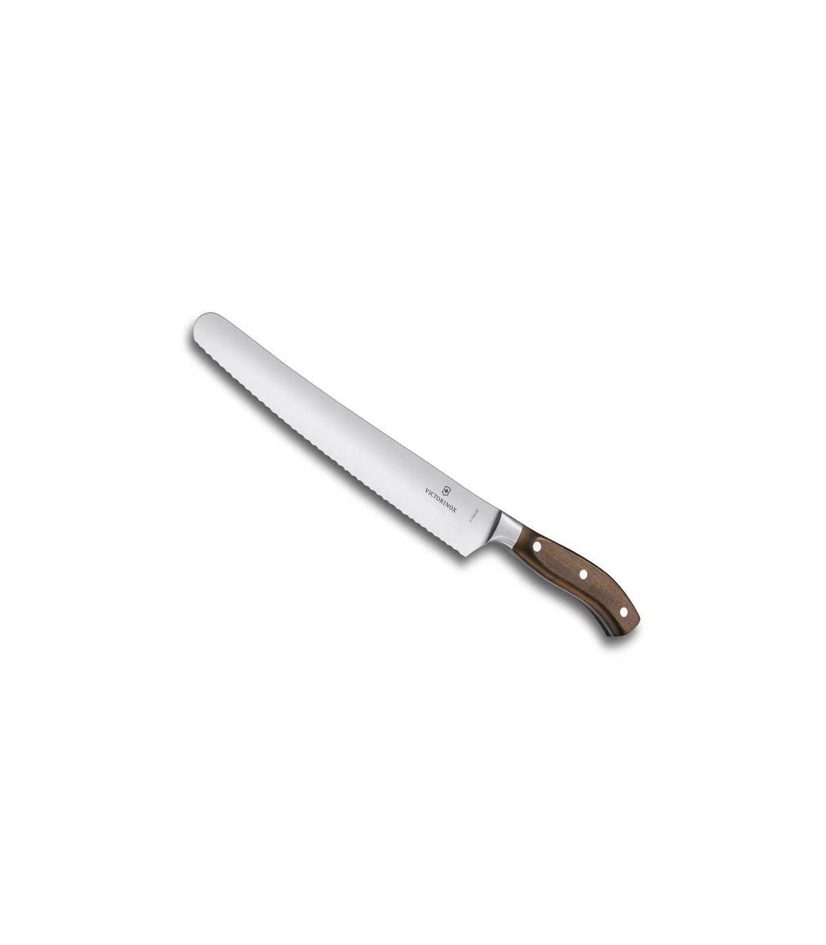 Couteau à pain/pâtissier forgé « Grand Maître », lame crantée 26 cm, manche érable modifié. Présentation en boîte cadeau.