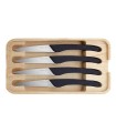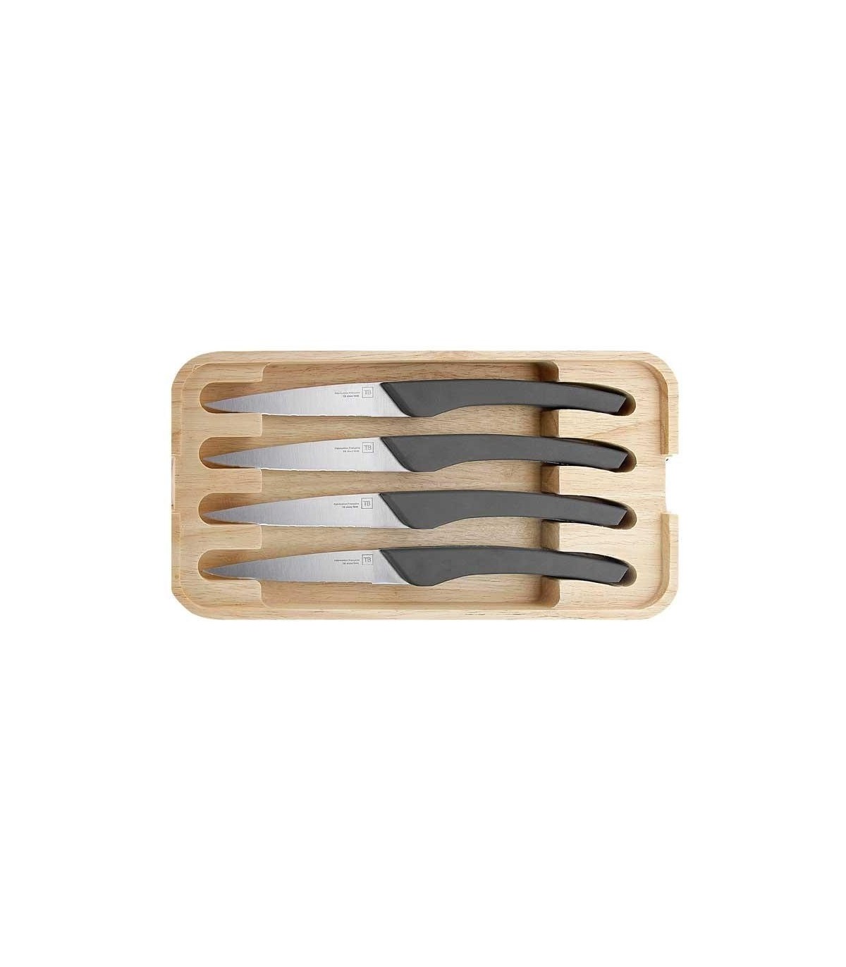 Coffret 4 couteaux steak TB « AUGUSTE », 22,5 cm, lame dentée pleine soie acier inox mat, manche ABS ardoise