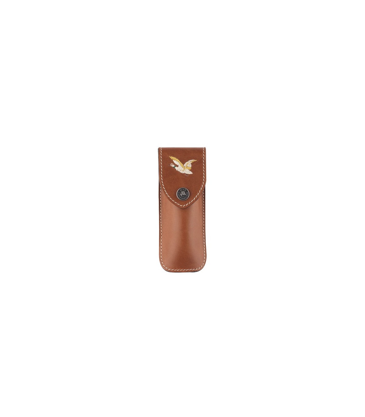 Max Capdebarthes 46812 Etui RANDONNEUR, cuir fauve, port horiz/verti motif bécasse, pour couteaux forts jusqu'à 12 cm de manche.