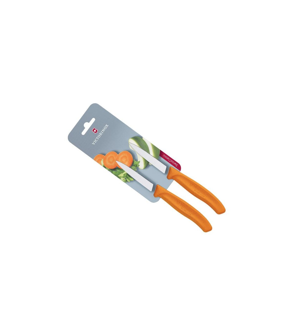 Victorinox 6.7606.l119b Carte de 2 couteaux office, lame 8 cm inox, pointe milieu, manche polypropylène orange