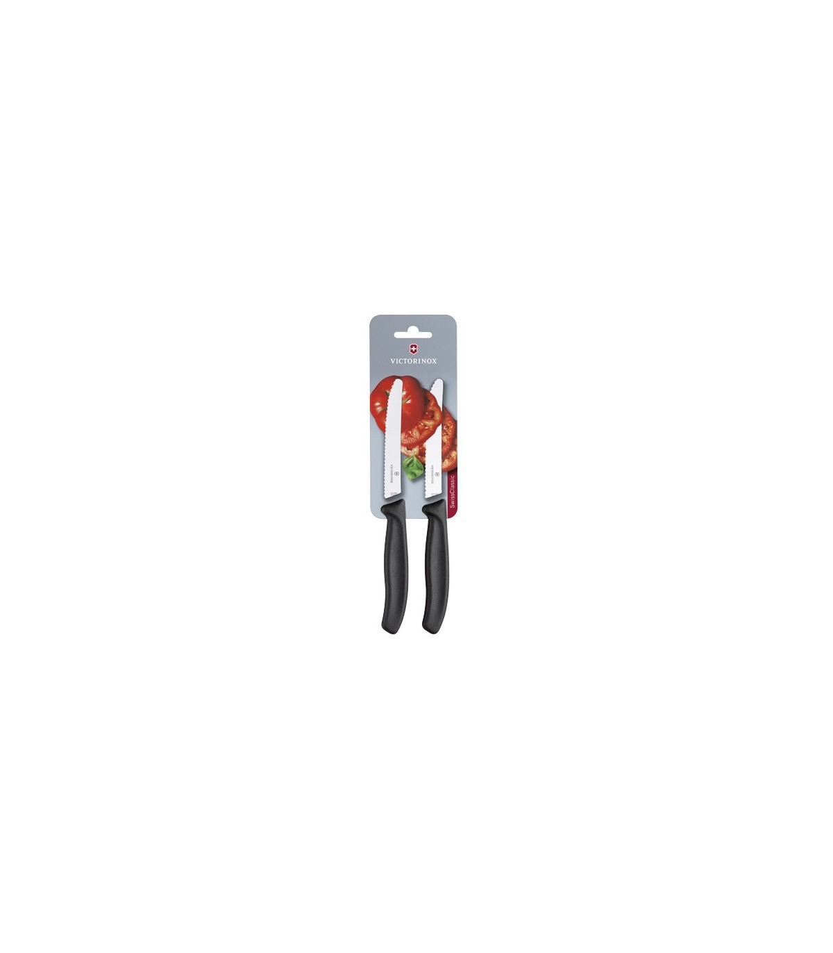 Victorinox 6.7833.b Carte de 2 couteaux de table/tomates, lame crantée 11 cm inox, bout rond, manche polypropylène noir.