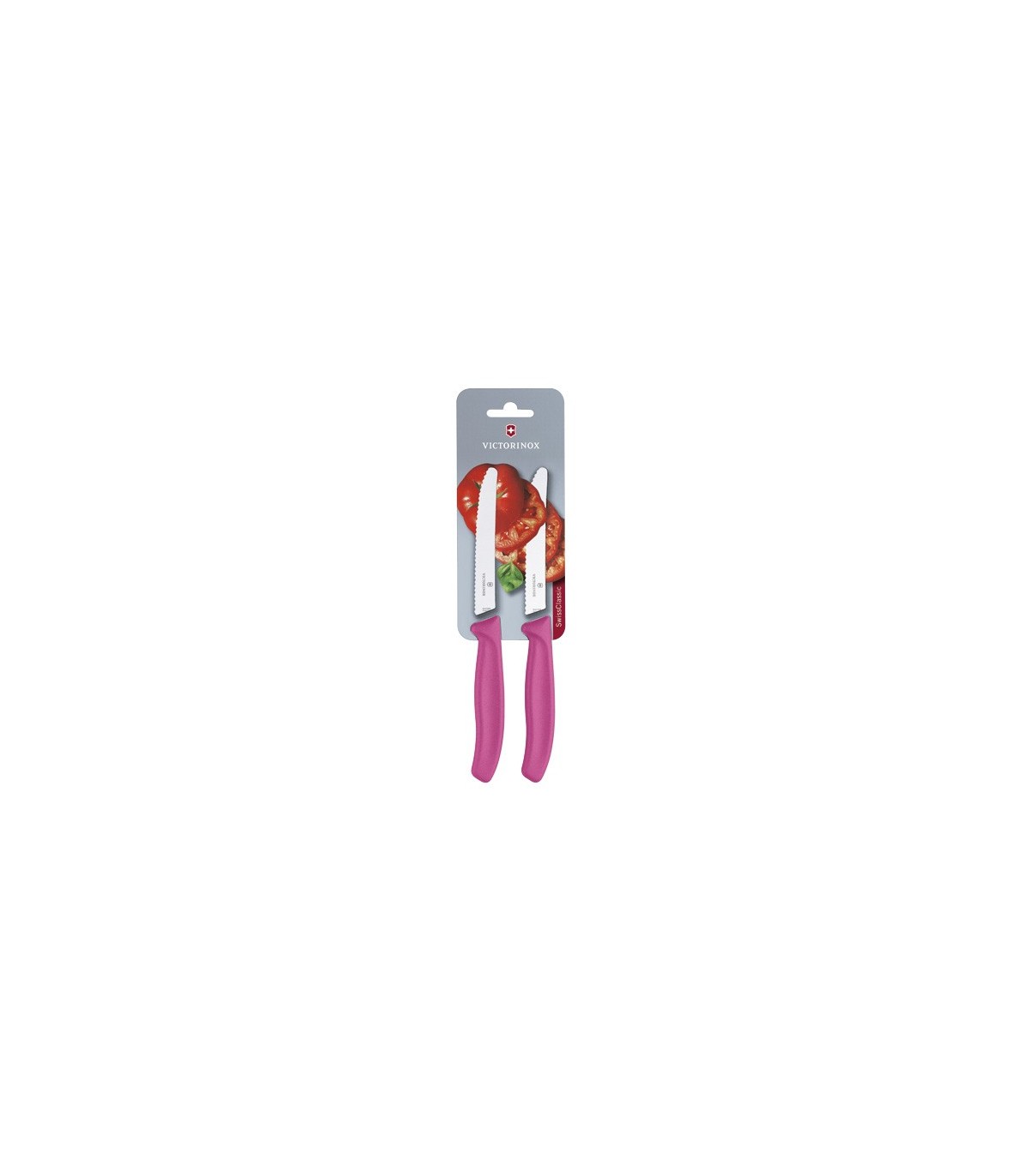 Victorinox 6.7836.l115b Carte de 2 couteaux de table/tomates, lame crantée 11 cm inox, bout rond, manche polypropylène rose