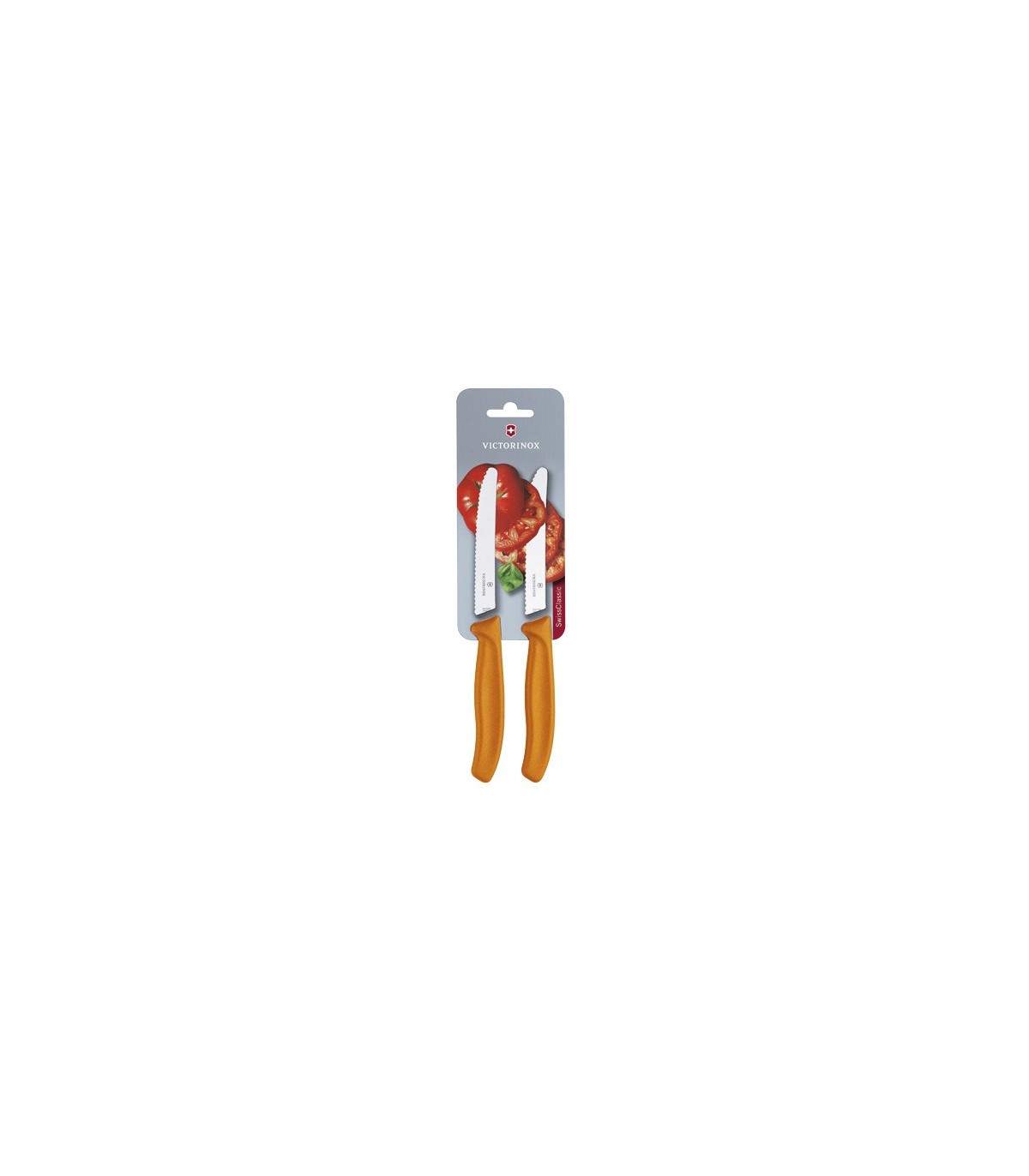 Victorinox 6.7836.l119b Carte de 2 couteaux de table/tomates, lame crantée 11 cm inox, bout rond, manche polypropylène orange