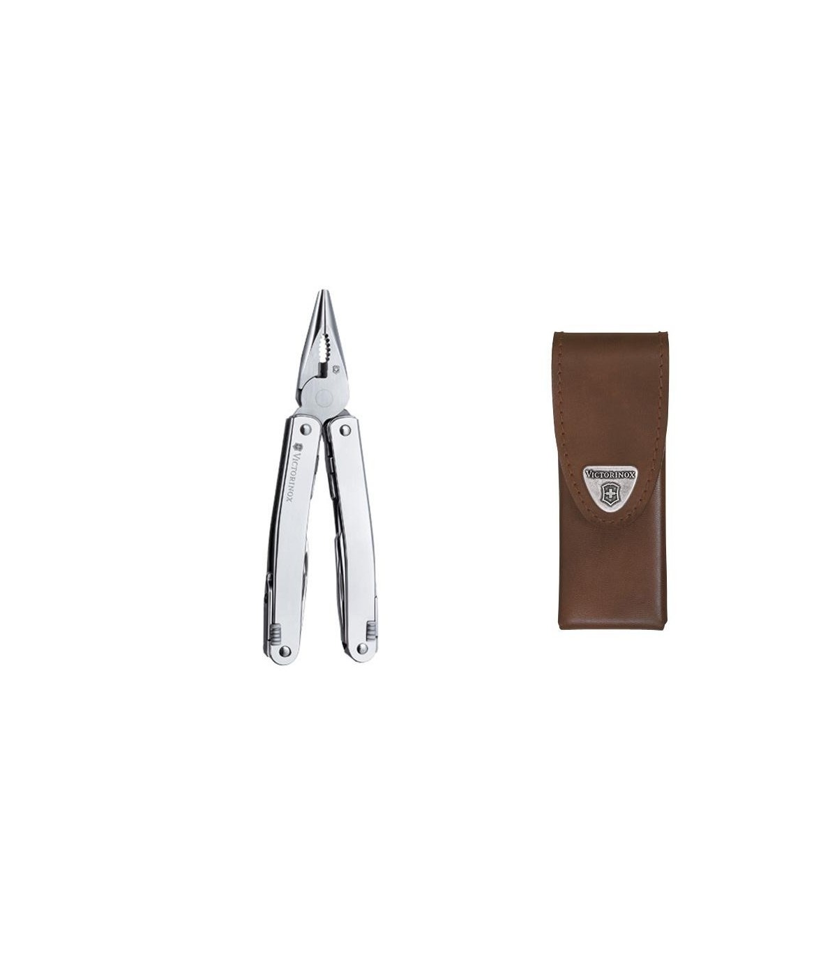 Les compétences et la collaboration de ces ingénieurs ont divulgué avec une grande maîtrise cette éloquente Pince Victorinox Swisstool Spirit. Cette Pince bénéficie de 11 pièces correspondant à 27 fonctions authentiques et plurivalentes :une Pince pointue un ouvre-boîtes un tournevis 6 mm un décapsuleur une scie à métaux une scie à bois un petit tournevis 2 mm un ciseau à bois un tournevis cruciforme 1+2 un ciseau une Pince multi-usage un étui cuir ou nylon un coupe fils Outil levier un plieur fils électrique une lame pointue une lime à métaux un poinçon alésoir un crochet multi fonctions un racloir un ciseau à bois un coupe gaine dans la longueur un dénudeur de fil électrique un tournevis 3 mm une encoche pour tire-bouchon un point dattache dix ressorts individuels un poussoir pour déblocage.Les diverses pièces peuvent être ouVertes directement, sans qu'il soit nécessaire, tout d'abord, d'ouvrir la Pince. Un mécanisme breveté par la célèbre marque Victorinox fait que les pièces sont bloquées une fois ouVertes. Cette somptueuse Pince dun poids de 205 grammes et dune longueur de 105 mm vous apportera de nombreuses satisfactions.