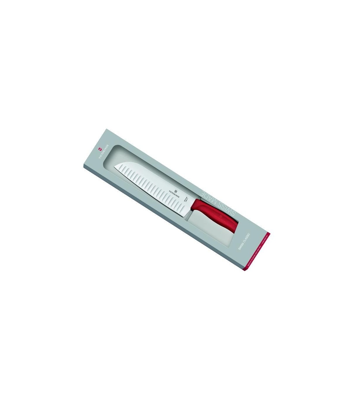 Victorinox 6.8521.17g Couteau Santoku, lame alvéolée 17 cm inox, manche polypropylène rouge, en boîte cadeau.