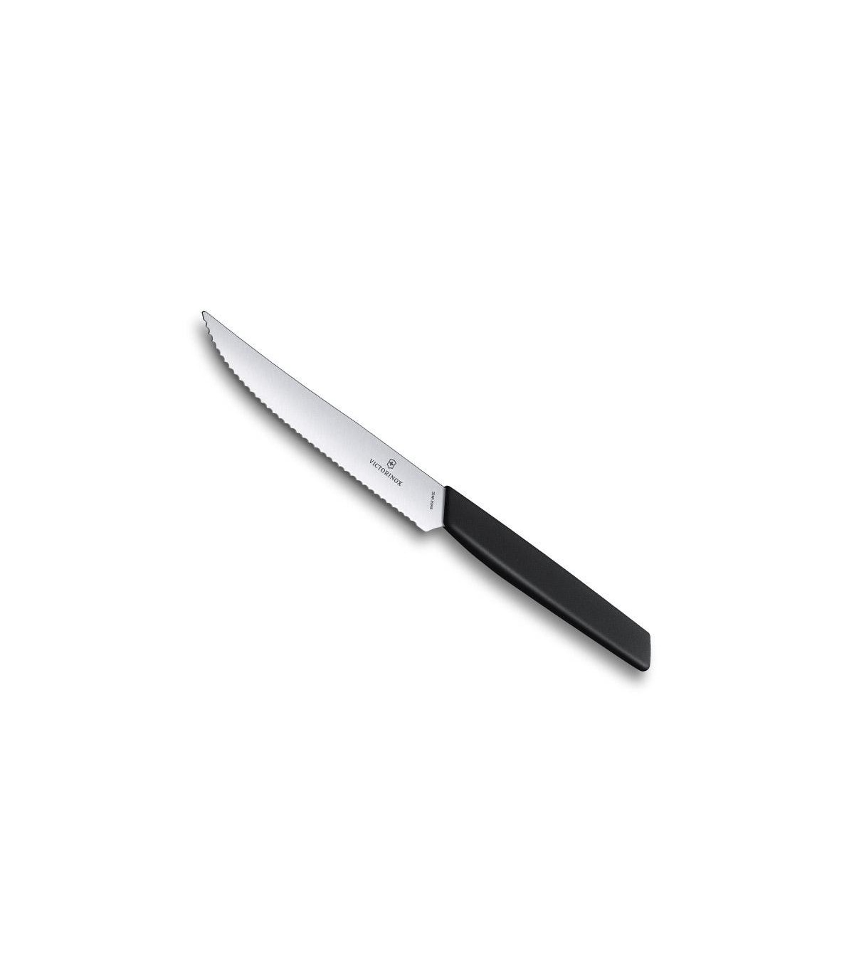 Boîte de 6 couteaux steak victorinox swis modern, lame crantée 12 cm inox, bout rond, manche noir